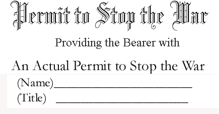 And if you don't yet have a personal permit to stop the war, here's one free from us. Give one to all your friends.